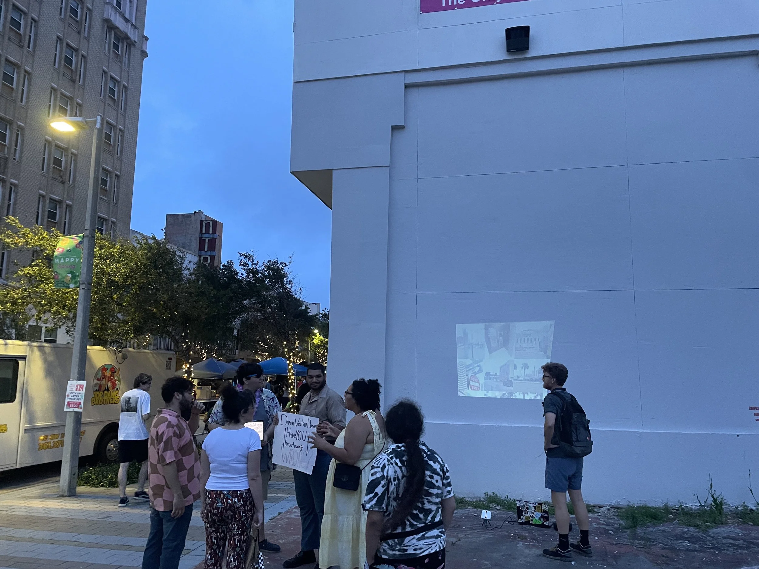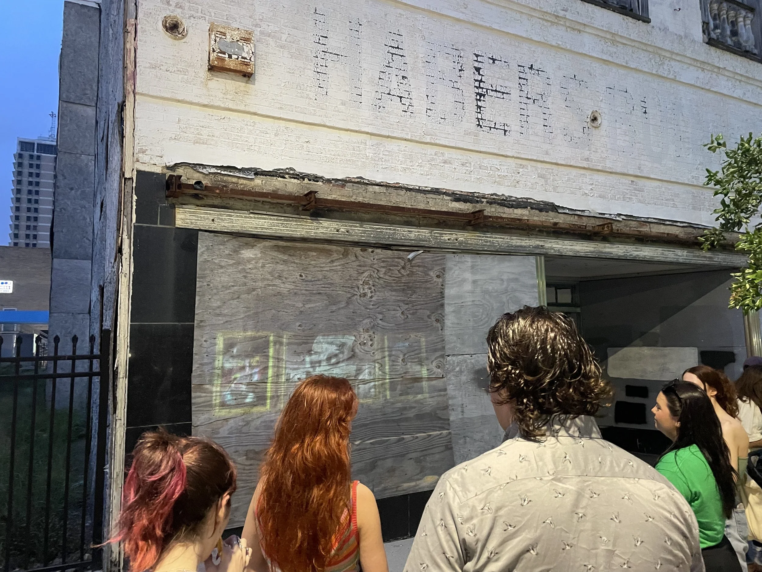An interdisciplinary collaboration between the Art Museum of South Texas (AMST) and Dr. Pattison’s film and literature class in the spring semester of 2024. For the second iteration of this collaboration, Dr. Pattison, the students, and an AMST staff representative walked in downtown Corpus Christi, experiencing the push and pull of political forces across the urban landscape. After presenting at AMST, Dr. Pattison’s class projected their interpretive maps of the downtown experience onto streets and buildings during ArtWalk. Their projects focused on themes of psychogeography, decomposition, and surveillance.